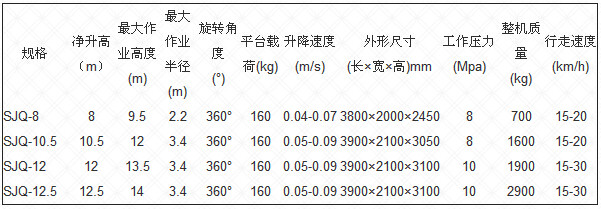 曲臂式升降平臺采用曲臂式工作臂,作業的范圍和空間不受限制。曲臂式升降平臺采用全液壓升降機構,在平臺斗內和升降機本體上均可操作。 升降平臺工作臂可360度左右全回轉。 液壓系統裝有防止主臂油缸油管爆裂的安全防爆閥。液壓支腿裝有防止支腿油缸回縮的液壓鎖緊裝置。液壓系統裝有平臺過載自動保護裝置,從而保證作業人員安全。平臺各節工作臂均裝有安全限位裝置。平臺液壓系統密封件均為國內、外知名品牌密封。整車動力為柴油機自備電源。曲臂系列型液壓升降平臺配有在斷電情況下的應急下降裝置。